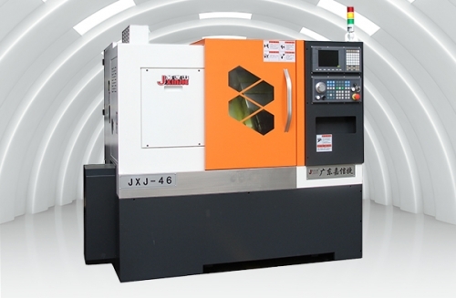 JXJ-46YD 系列數控車床采用 35°斜床身設計,整體鑄造,主軸軸承采 用進口P4 級軸承,具有高轉速、高精度、低噪音的優點,X 、Z 軸雙線軌 設計,運行平穩,精度持久,加工效率高。后置分體式排水設計,可加裝 后排屑機或右排屑機,可實現無人化自動生產。